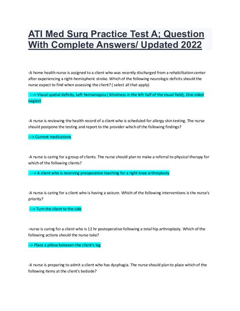 Read Online Ati Medical Surgical Test Answers Kindle Editon